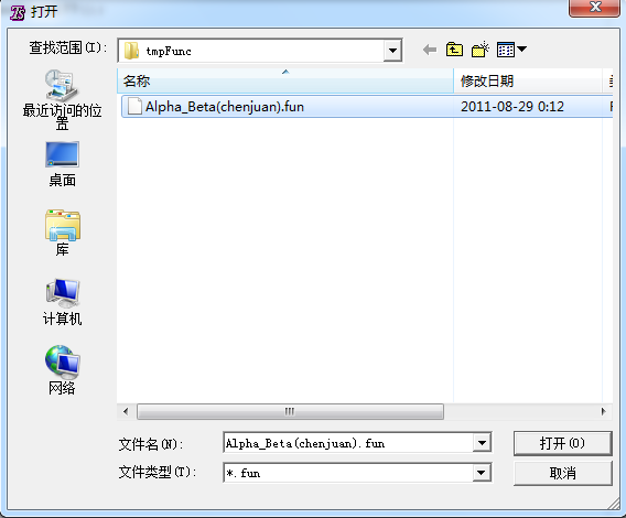 在弹出的“打开”窗口中,选择要导入的函数,单击“打开”按钮。