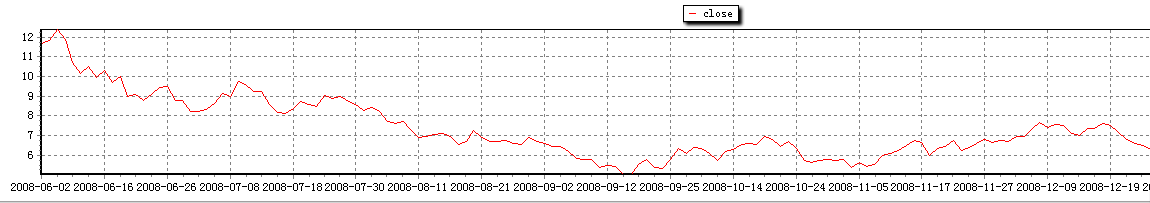 //取得万科A从20080601到20081231复权后的价格序列(采用交易所数据除权)
