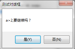 弹出如下消息对话框,选择“是”则返回“是”按钮id的返回字,选择否则返回“否”按钮id的返回字。