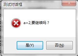b:=rdo2 MessageBox('a>2,要继续吗?','测试对话框',c);
