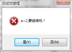 b:=rdo2 MessageBox('a>2,要继续吗?','测试对话框',c);