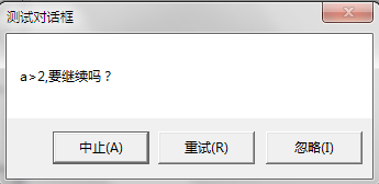 b:=rdo2 MessageBox('a>2,要继续吗?','测试对话框',c);