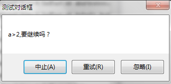 b:=rdo2 MessageBox('a>2,要继续吗?','测试对话框',c);