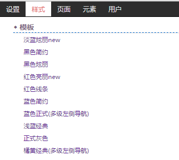 若要更换网站主题风格,天软提供常用风格选择,点击顶部工具“样式”。