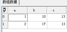 t1:=array(('a':1,'b':10,'c':13),('a':2,'b':17,'c':13));
