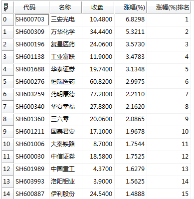 取上证50的成分股,获得涨幅之后,对涨幅进行排名