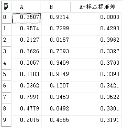 arr[:,"A-样本标准差"]:=StdDev(arr,0,ml,"A");