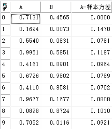 arr[:,"A-样本方差"]:=Variance(arr,0,ml,"A");