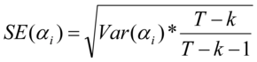 为方程系数的估计,T为样本容量,k为自变量个数,X为常量加自变量的矩阵,其中