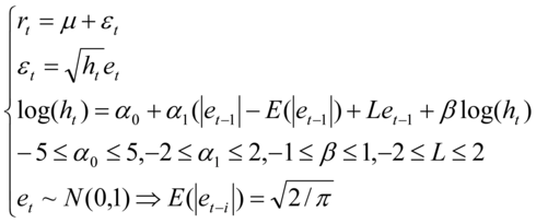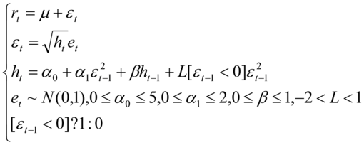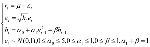 广义自回归条件异方差模型,包含四种模型:GARCH(1,1)、GJR(1,1)、IGARCH(1,1)和EGARCH(1,1),本模型采用了最大似然估计法去估计模型的系数,可做一步预测。