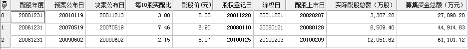 //取'中百集团'在2000年1月1日至2012年8月30日的区间配股详情;