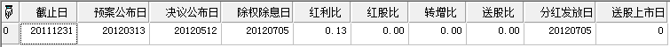 //取'万科A'在2012年1月1日至2012年8月30日的区间分红送股情