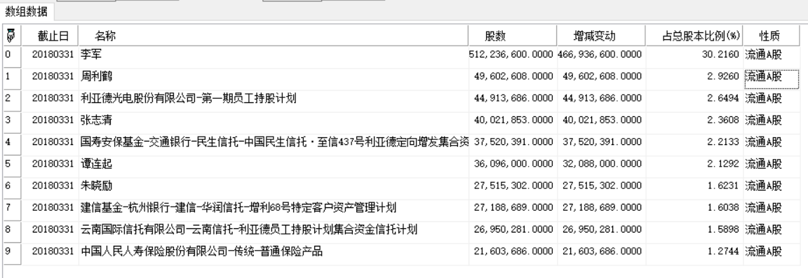 //SZ300296 利亚德2012年年报到2018年一季的十大股东持股变动详情数。