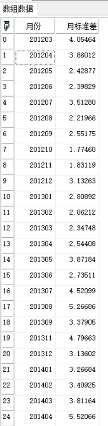 依月为单位,计算股票收益率(收益率指日收益率)的标准差。