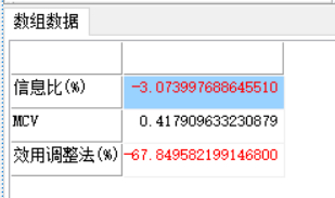 通过参数t1、t2给定的证券和指数的涨幅数据,计算非系统性风险,返回信息比(%)、MCV、效用调整法(%)。注意,t1、t2必须包含“涨幅(%)”列。
