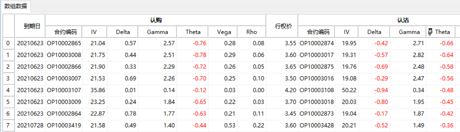 数组,不同类型的期权数据