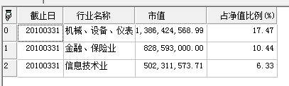 //返回华安创新2010年一季报前3名行业详情,结果如下图所示。
