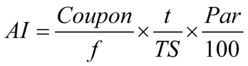BondAccruedInterest1(Par:Real;Coupon: Real;f:Integert:Integer;TS:Integer;) : Real