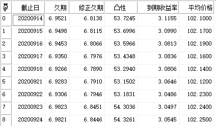 | 返回 | Array | 区间债券估值,其数组结构如下: