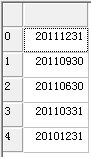//返2011年回按照季报标准的前5个报告期列表