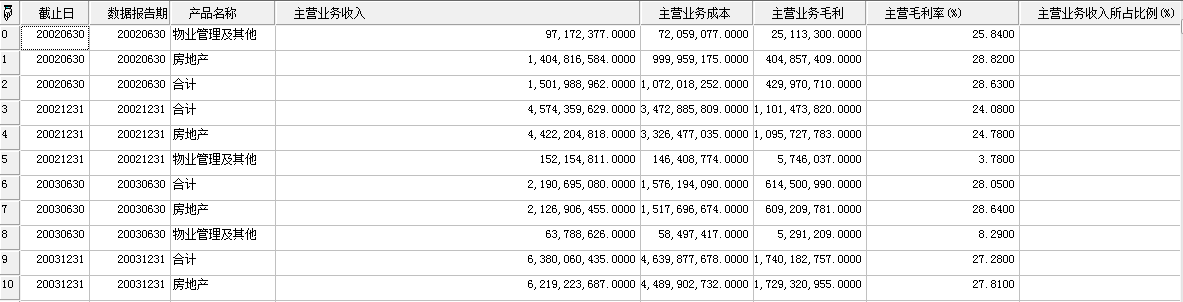 return ReportByEvent("SZ000002","主营收入及成本");