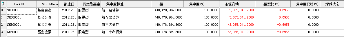 | 返回 | Array | 数据表,返回指定基金指定报告期的基金扩展-债券集中度 |