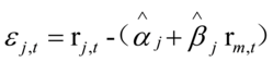 2、用涨幅序列计算出股票的Beta和Alpha,利用市场模型进行回归: