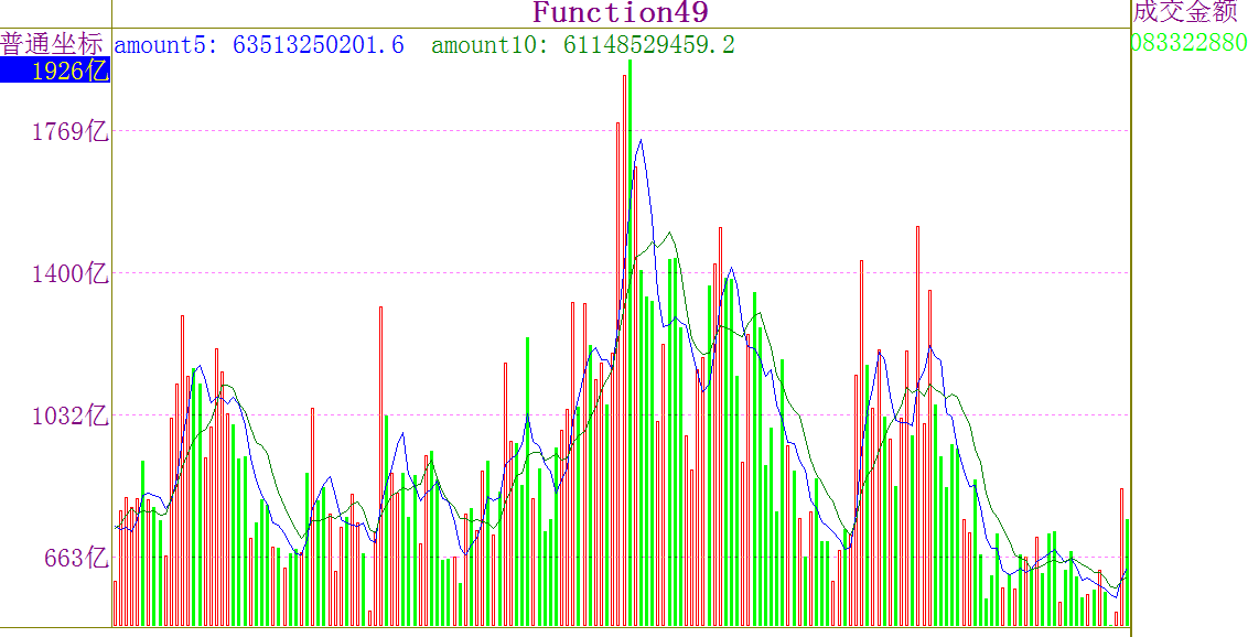 叠加成交额的N1日、N2日移动平均线,参考成交量指标。