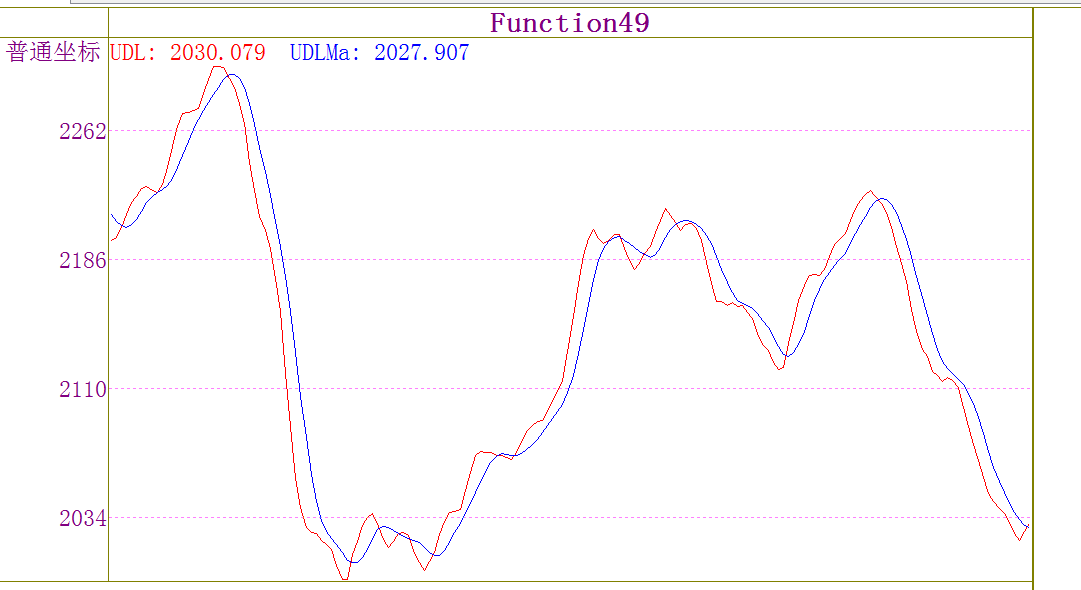 2.使用时,可列出一年以上走势图,观察其常态性分布范围,然后用参考线设定其超买超卖范围。通常UDL 高于某个极限时,短期股价会下跌;UDL 低于某个极限时,短期股价会上涨;