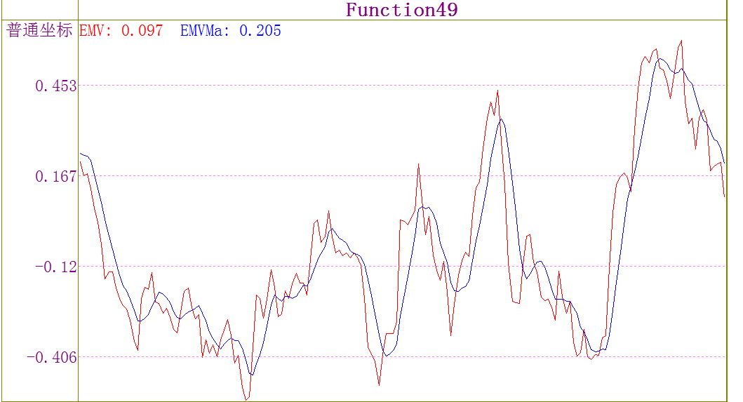 2.EMV 由上往下穿越0 轴时,视为中期卖出信号;