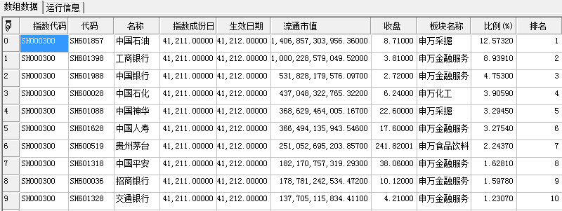 | 返回 | TableArray | 策略验证-指数基金-得到指数IndexId成份股的t-1日流通市值和比例 |