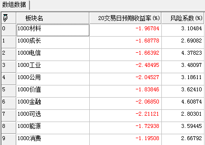 | 返回 | TableArray | 所有板块Period期的预期收益和风险 |