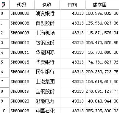 return getDataByDIFF(arr,20170801T,20180801T,'成交量','StockVolSum(BegT,EndT)');