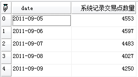 return nday(5,'date',datetostr(sp_time()),'系统记录交易点数量',tdcount());