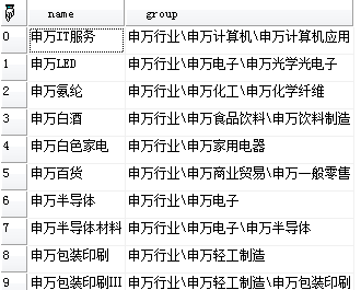 | 返回 | TableArray | 二维数组,板块名称及其所属分类 |