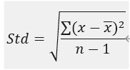 STDEVOF (Expression:TExpression[;BoolConditionExp:TExpression[;N:Integer[;MovingFirst:Bool[;CacheId:String]]]]] ) :real