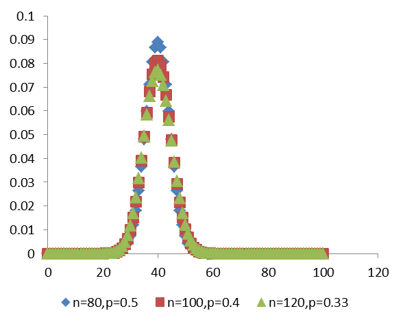 图5-6 p变化引起的概率函数的变化图5-7 n变化引起的概率函数的变化