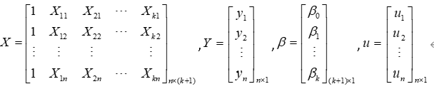 对于7-1形式的多元线性回归模型,我们还可以使用矩阵来简化: