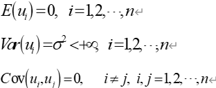 3)随机干扰项服从零均值、同方差、零协方差