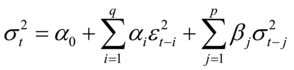 非负的限定条件。为此,Bollerslev(1986)扩展了Engle的原始模型,提出了广义的自回归条件异方差GARCH模型,在方差方程中用一个或两个