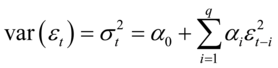 为了刻画这种异方差性,Engel(1982)提出了ARCH模型,即自回归条件异方差模型。该模型的一般形式如下: