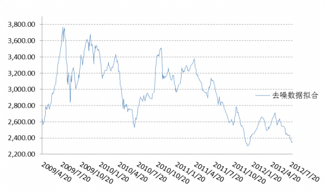 将去噪后的序列与原始收盘价序列进行比较后,可以发现大部分的小幅波动被去除, 而信号的主要特征均被保留, 得到1组消噪的时间序列