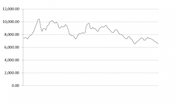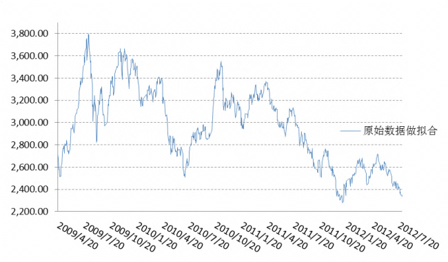 选取2009年4月20日~2011 年5 月19 日期间800个交易日的沪深市场沪深300日综合指数收盘价信号作为原始序列
