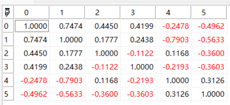 【注】:为保证调整前后相关系数一一对应关系明确,建议输入矩阵A为带有字符串的行、列标