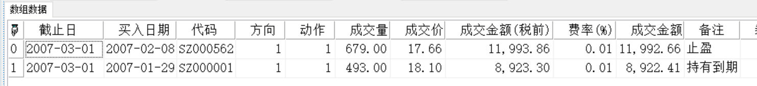 | 返回 | TableArray | T日由于持有到期、止盈、止损而卖出的证券的交易明细 |