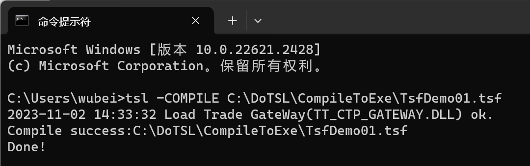 tsl -COMPILE C:\DoTSL\CompileToExe\TsfDemo01.tsf