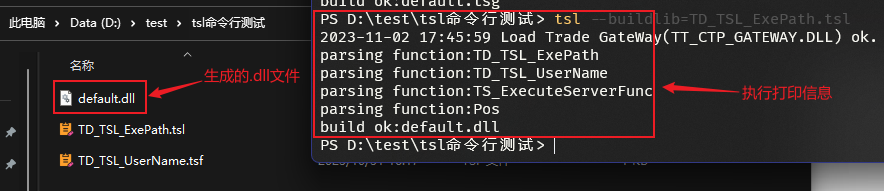 输出:在tsl文件同目录下生成.dll文件。tsl文件及其依赖会编译至单个文件中。