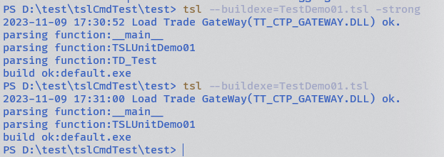 输入:tsl--buildexe=TestDemo01.tsl -strong