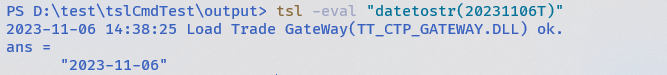 输入:tsl -eval "datetostr(20231106T)"