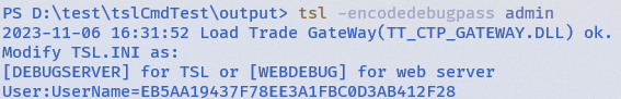 输入:tsl -encodedebugpass admin
